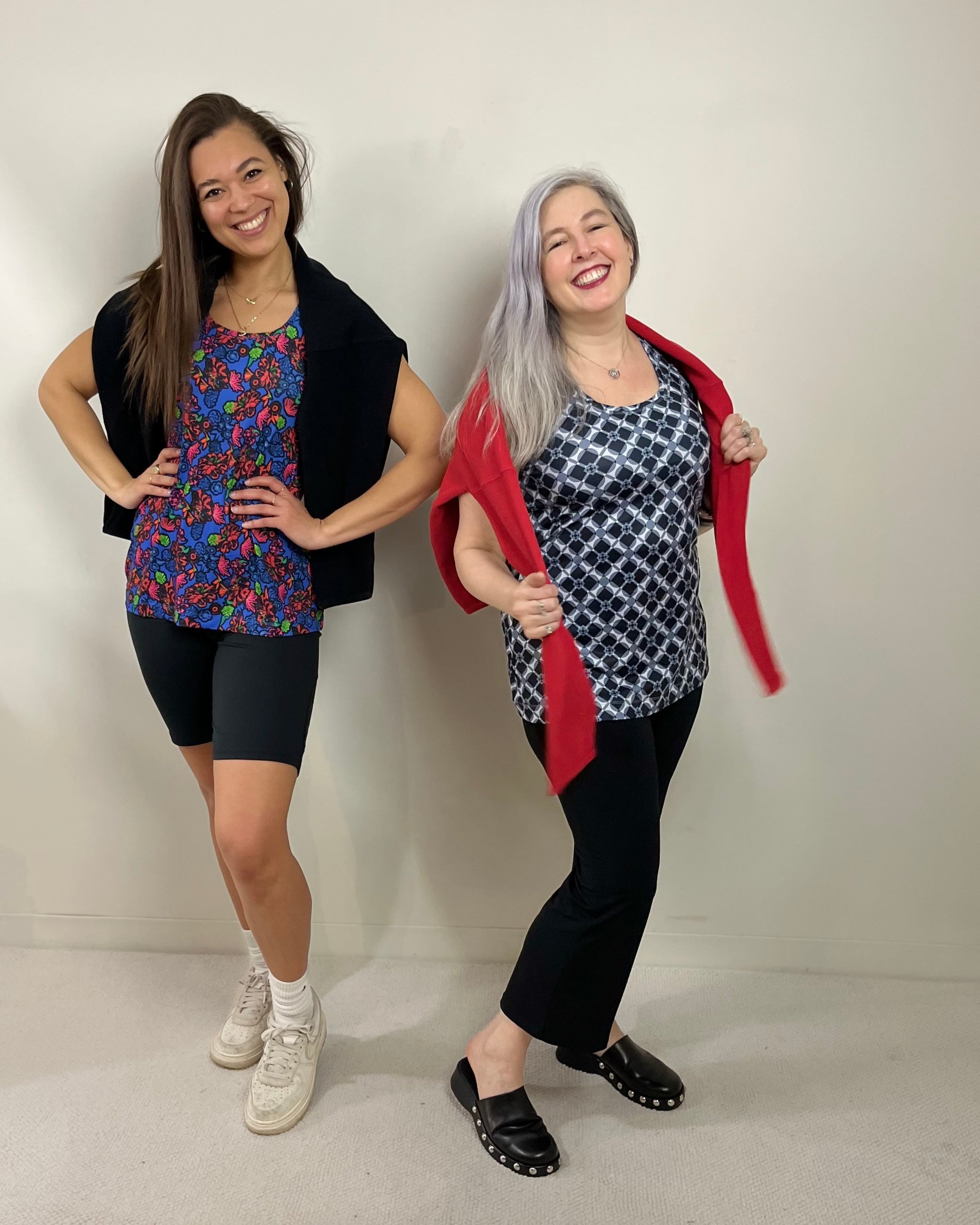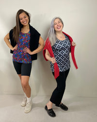 It's our 5th Anniversary and we're bringing back a favorite from our Vault at a SUMMER SPECIAL price, just in time for summer fun! Ours alone designer prints make this top Capsule-building perfect! The Active Tank is made from our Signature Jersey and features a and sporty "Y-back" that shows off your pretty shoulders. But don't "just" wear this for Pickle Ball and yoga! We love layering this flattering, slightly flared top over Straight Leg Pants and paired with a Swing Shorty -- out to dinner you go! (Psst! Worn to a wedding with Wide Leg Pants and pearls! I have pictures!) Imported. 95% Poly, 5% Span. Machine Wash warm, tumble dry low.