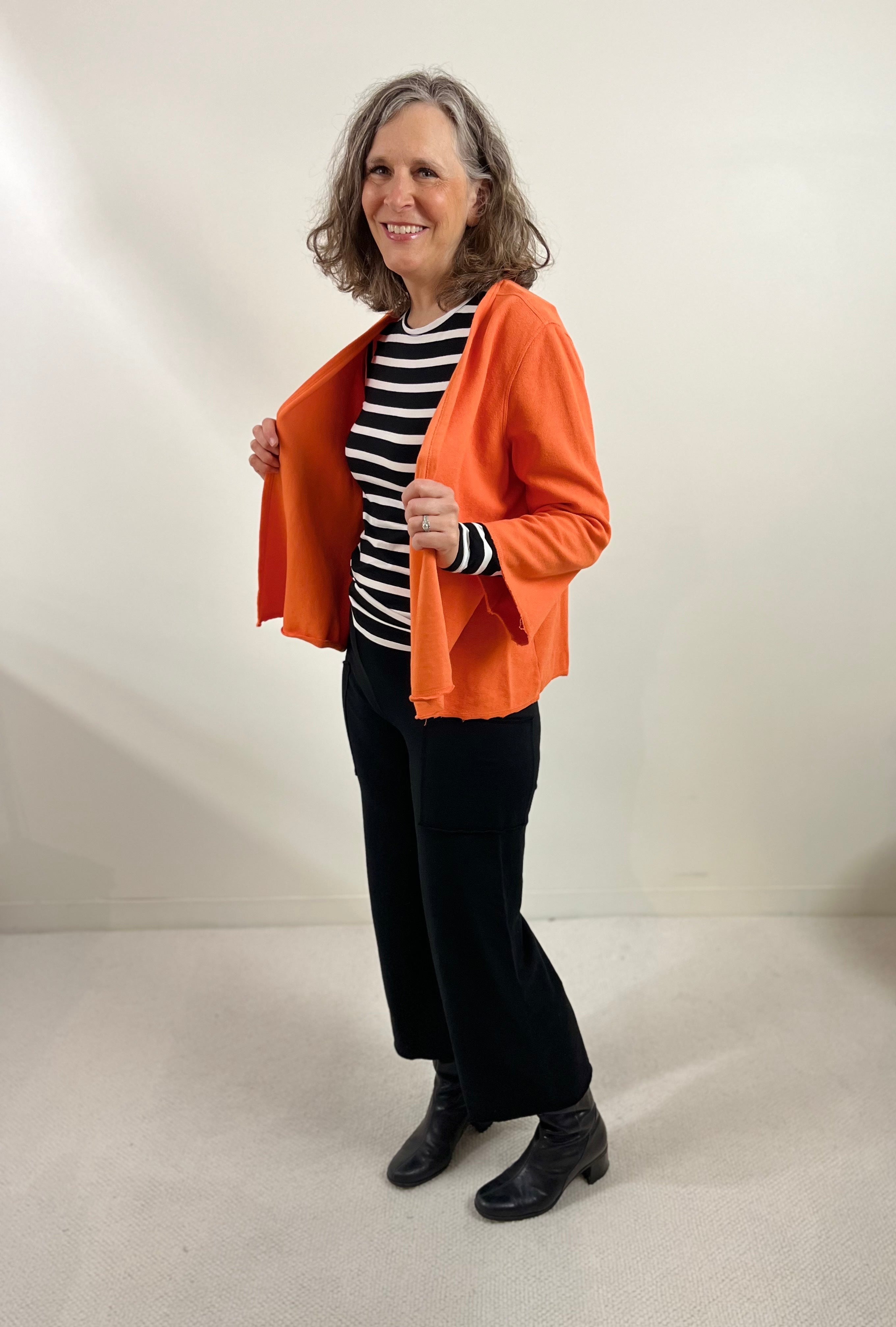 Comfort plus! These raw-edged, French terry, 95% cotton/5% Spandex wide leg crops have fun and games written all over them. Pair with a sassy sweatshirt, your favorite Tees, a great seasonal sweater. Wear with sandals for a day on the beach or your best boots for a cozy look on a cooler day. Patch pockets add function in a side "cargo" position. FIT TIP: waistband falls below the navel: long-waisted women may want to size up! 26" inseam. Made in USA. Wash on warm, cool dryer.