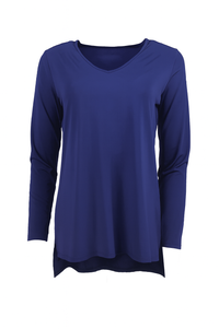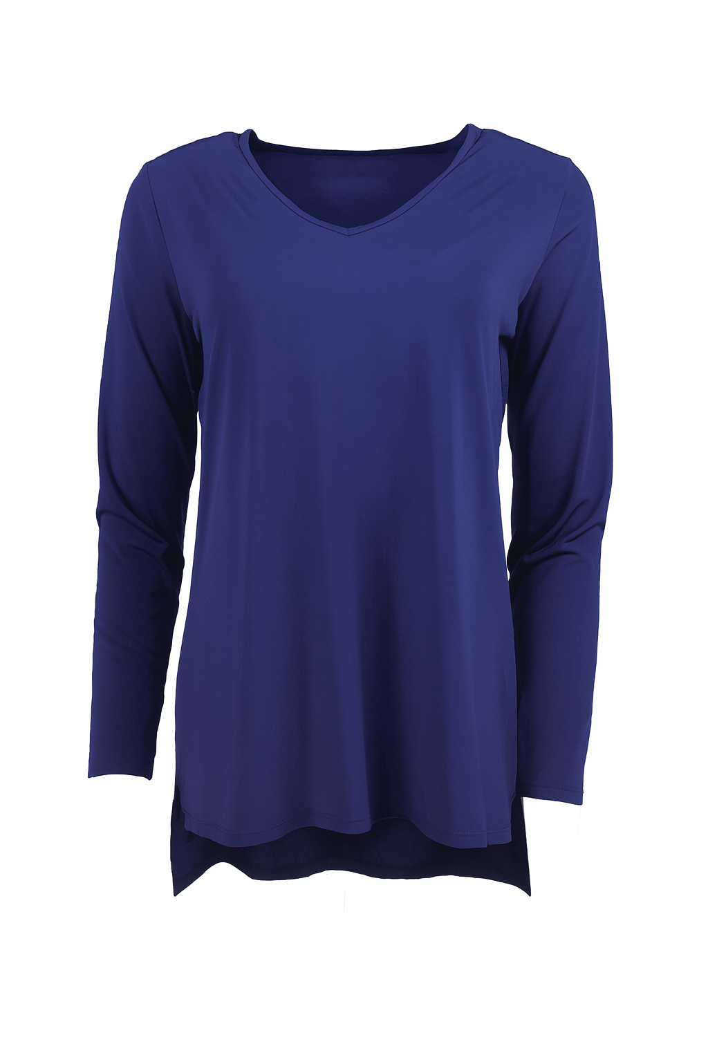 First of all, this piece was “designed” by our Stylists who zeroed in on the key details their clients love: a face-flattering V-neck, “push-up” sleeves (takes 5 pounds off of your hips — NO DIETING!), and a cool HiLo hemline that can be tied, French-tucked, or worn loose and lovely.
