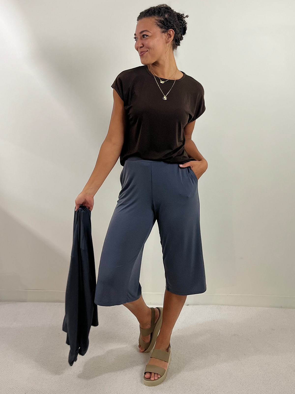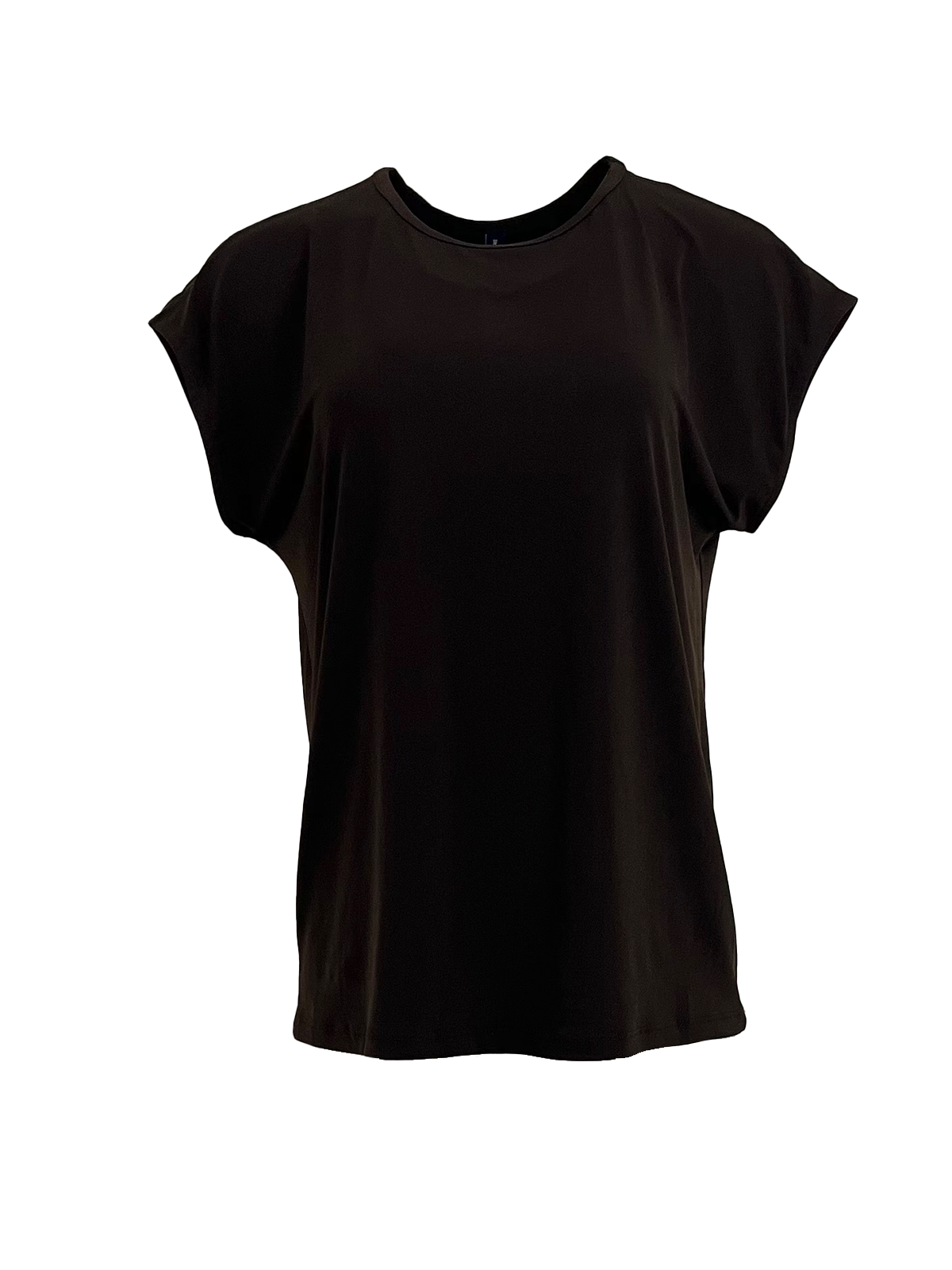 A new layer to love! With a link somewhere between our number one best selling, turn around top, and our super popular keyhole top, this new top will soon be at the front of your closet. A soft, rounded neckline and barely exaggerated shoulders give a woman’s body a beautiful line. Made in USA in our signature Liquid Jersey (95% polyester, 5% Spandex), we are bringing this shell into our capsule concept in a wide array of colors to help you create the perfect twin set or under layer.