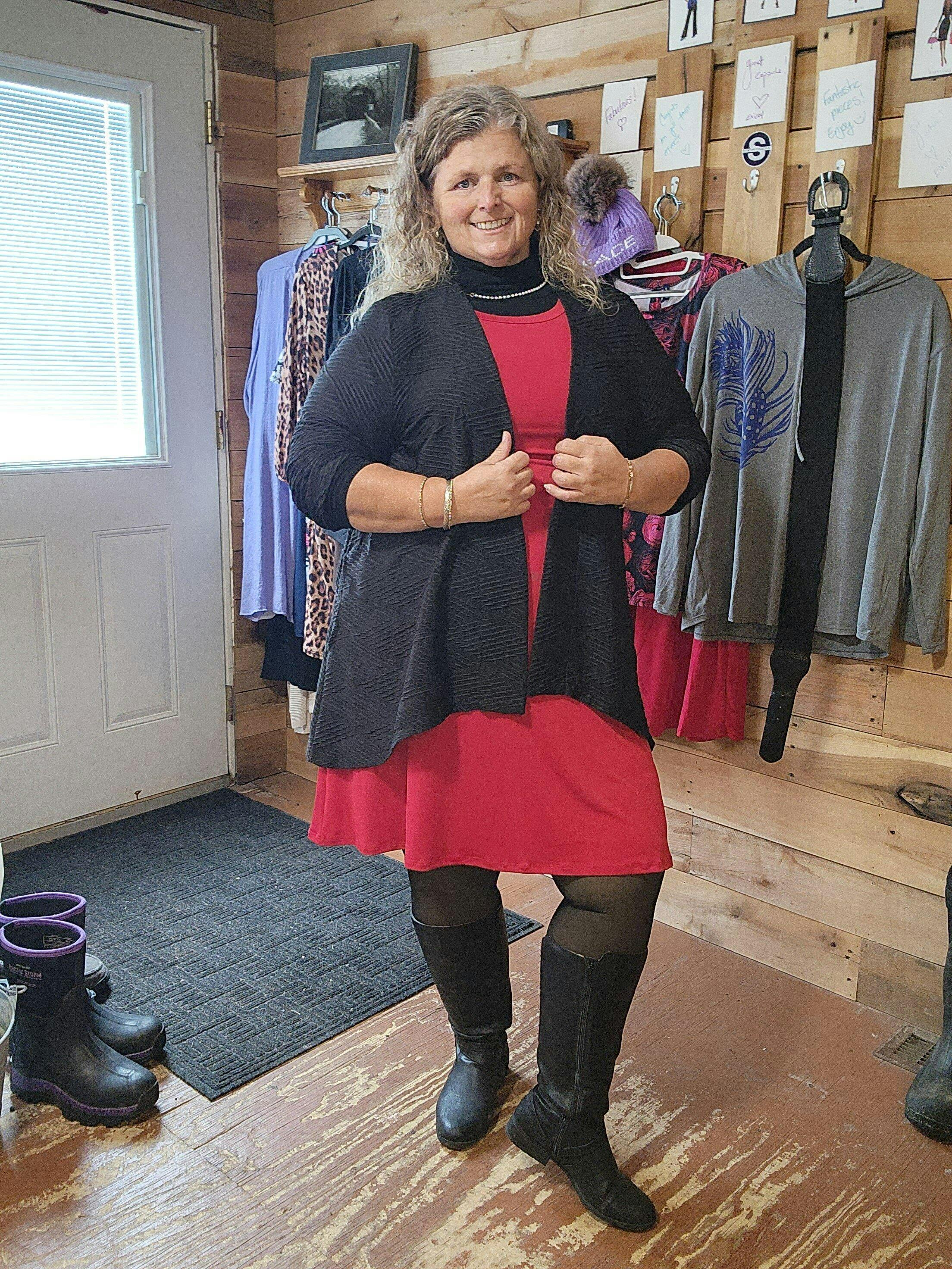 We took a popular top "body" and stretched into your new favorite dress...with POCKETS! You will love this flowy shift as your all day/every day pullover-and-go dress -- it was MADE for accessorizing YOUR way! We love it with a Swing Jacket and flats for work, dressed up with heels and sparkling jewelry for a night out, belted with leggings and boots (denim jacket friendly!), or pulled over a swimsuit at the pool. Talk about versatile!