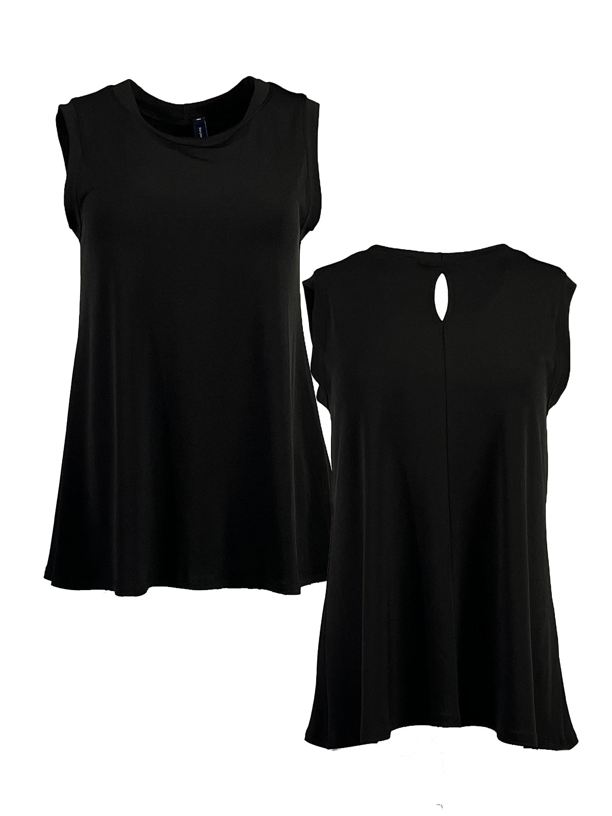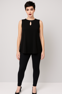 Look great coming and going! This top can be worn two different ways: keyhole front and center, or winking at them as you leave the room! We love this swingy sleeveless top over any pant, legging, or skirt (it's so good belted!) -- great for yoga, perfect for a night out. Try layering with a Curated Companion Scoop or Turtleneck for added versatility.